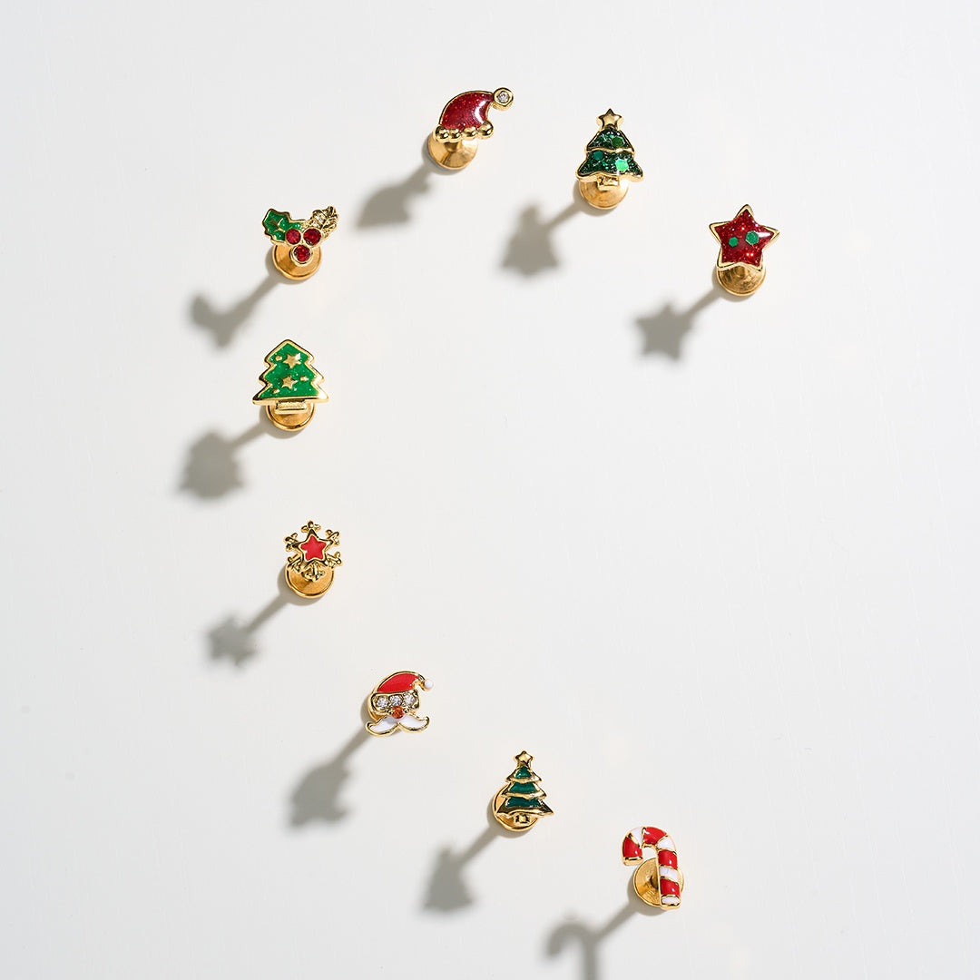 3PCS Star/Candy Cane/Tree Nose Studs Set