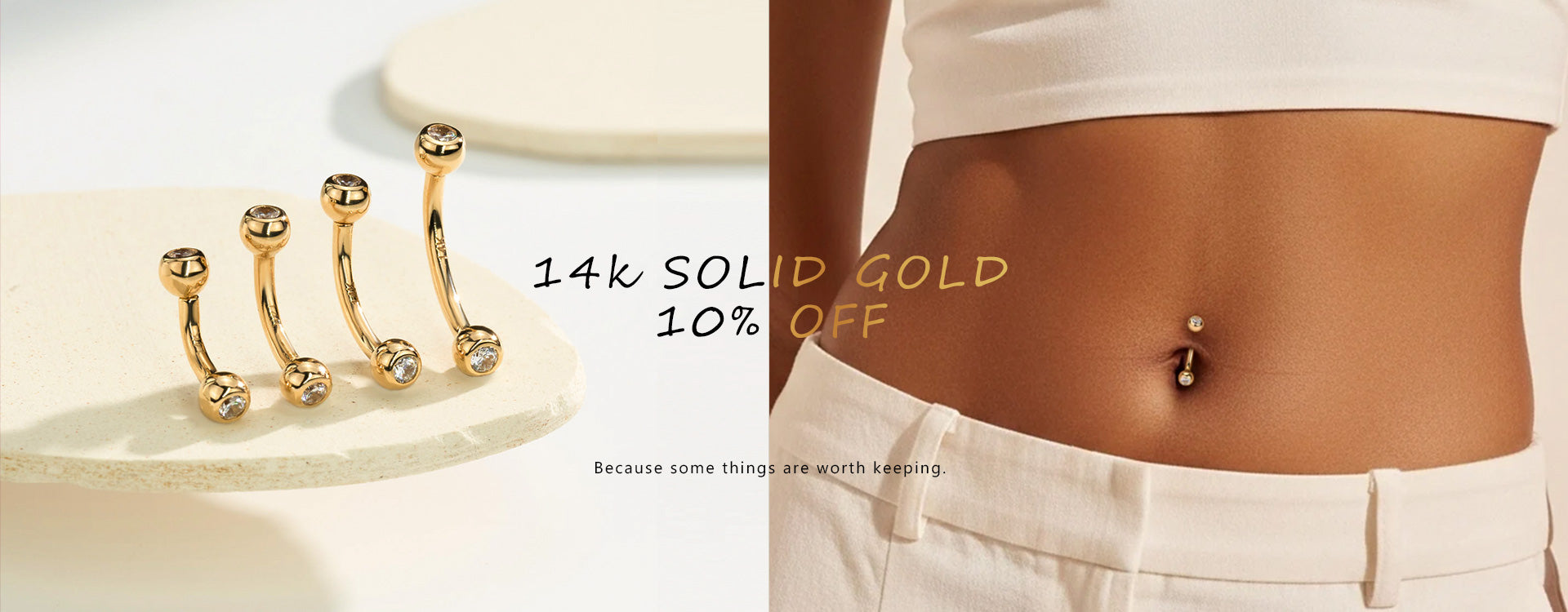 14K Solid Gold CZ Internally Threaded Belly Ring
