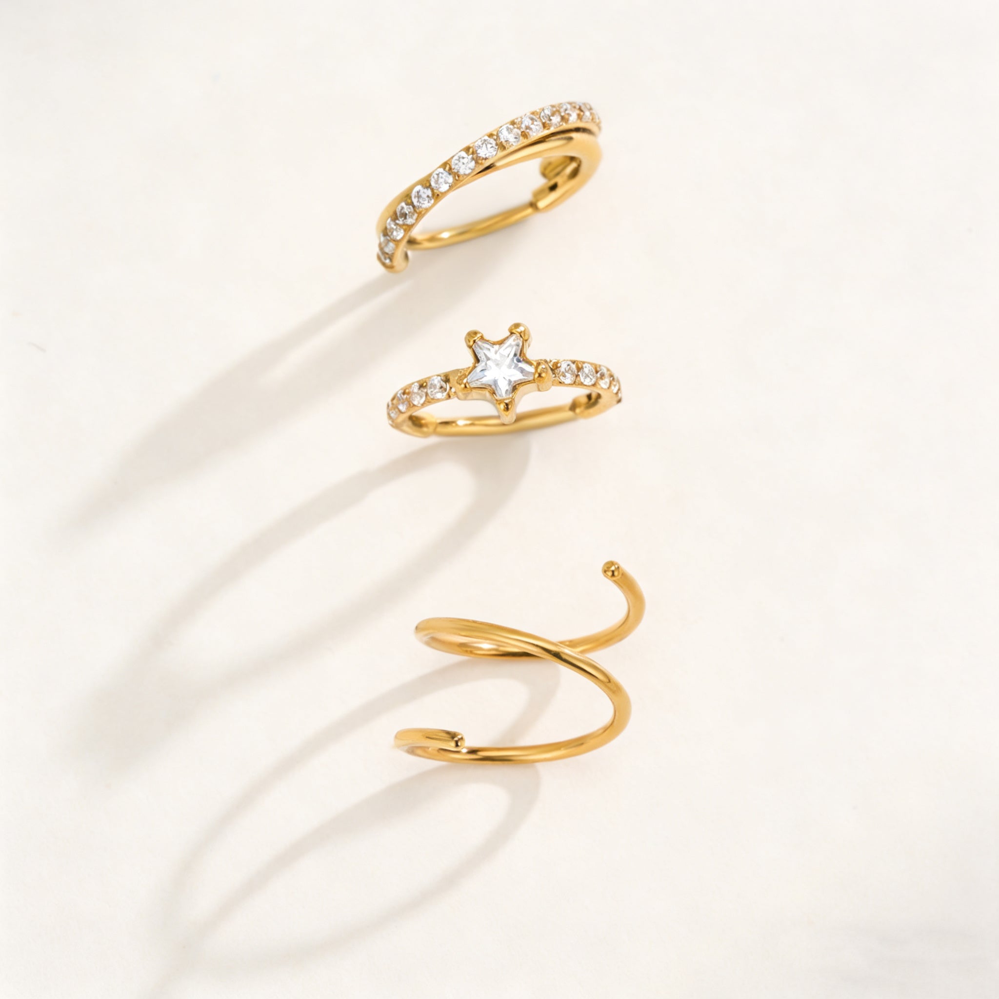 14K Solid Gold Triple Moissanite Cartilage Stud