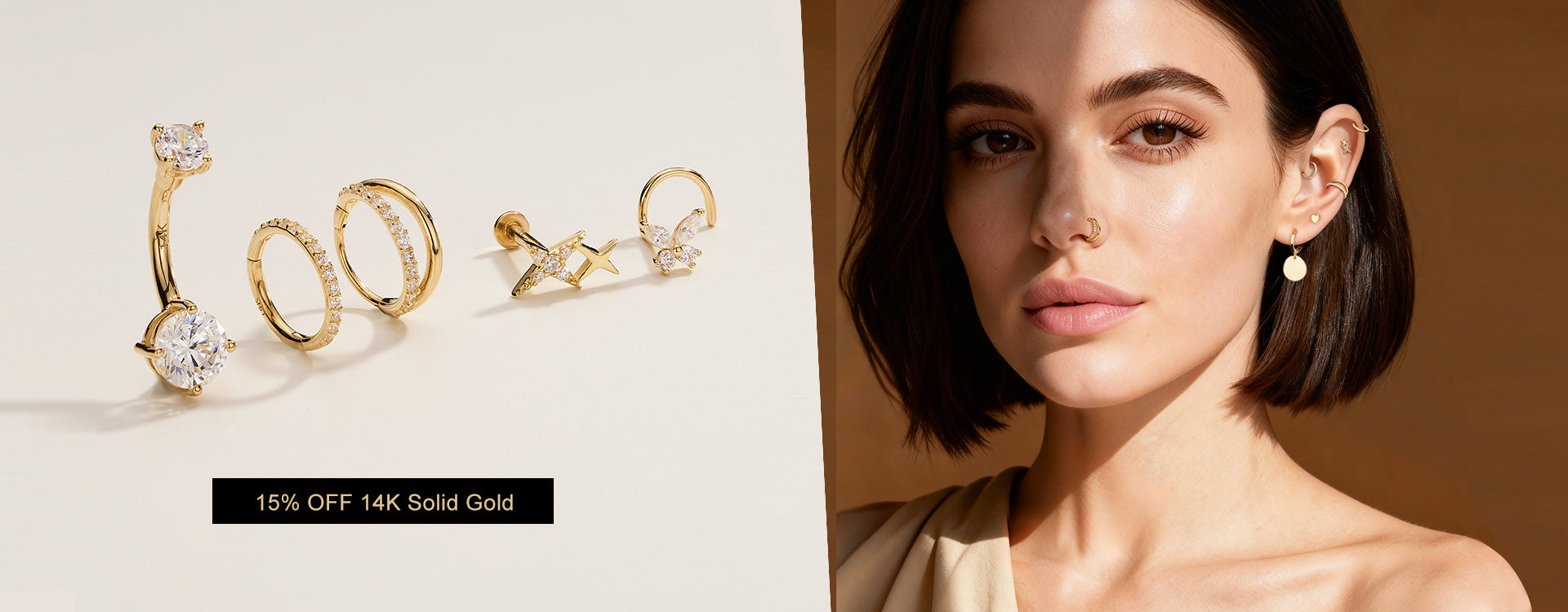 16G 14K Gold Semi-Gem Double Segment Cartilage Hoop