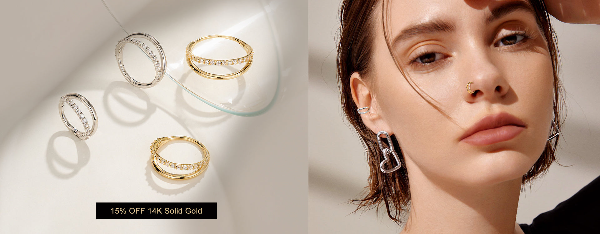 Boucles d'oreilles créoles Daith Helix en or 14K double couche CZ 16G