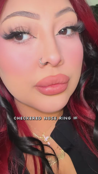This nose ring features a unique checkered pattern across two parallel rows, creating a striking, geometric design that stands out against the skin.
