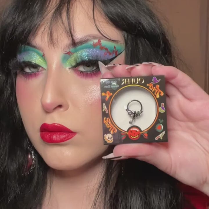 This green abalone shell bat septum ring can easily capture one's attention with its captivating ombre color palate.